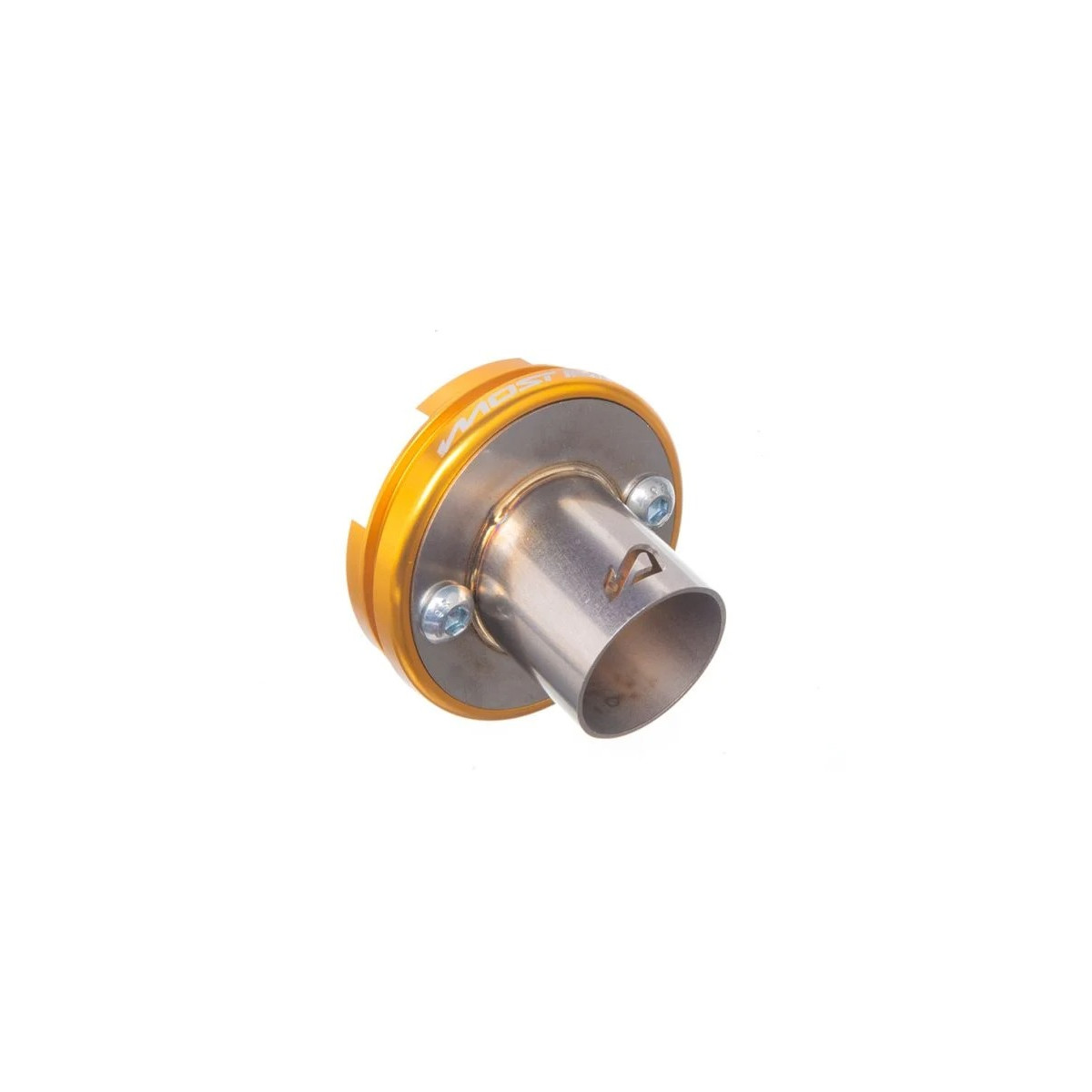 ✨ Dale un toque racing y brillante a tu silenciador MOST con esta cápsula de salida M2 en aluminio CNC color oro.