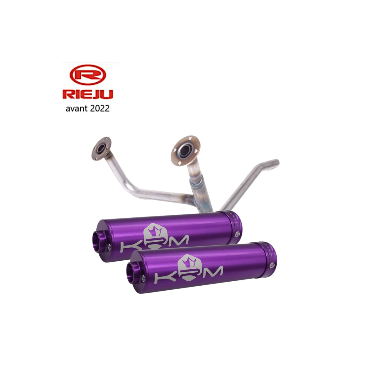 🏁 El tubo doble salida de la marca MOST es de acero realizado a la mano soldado al TIG, y se vende con dos silenciadores KRM de aluminio CNC anodizado lila.