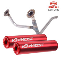 Date un capricho con esta doble salida de escape MOST y sus dos silenciadores rojos, perfectamente adaptados a tu Rieju MRT 50 con escape MOST y KRM de paso alto. El conjunto se vende con todo lo necesario para el montaje.