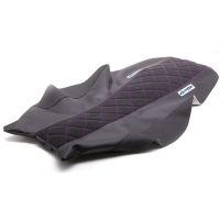Diseñada para Derbi Senda y Gilera SMT de 2011 a 2017, combina confort, agarre y estilo original. Las costuras violetas aportan un contraste elegante y moderno, dando a tu moto un toque único y deportivo.