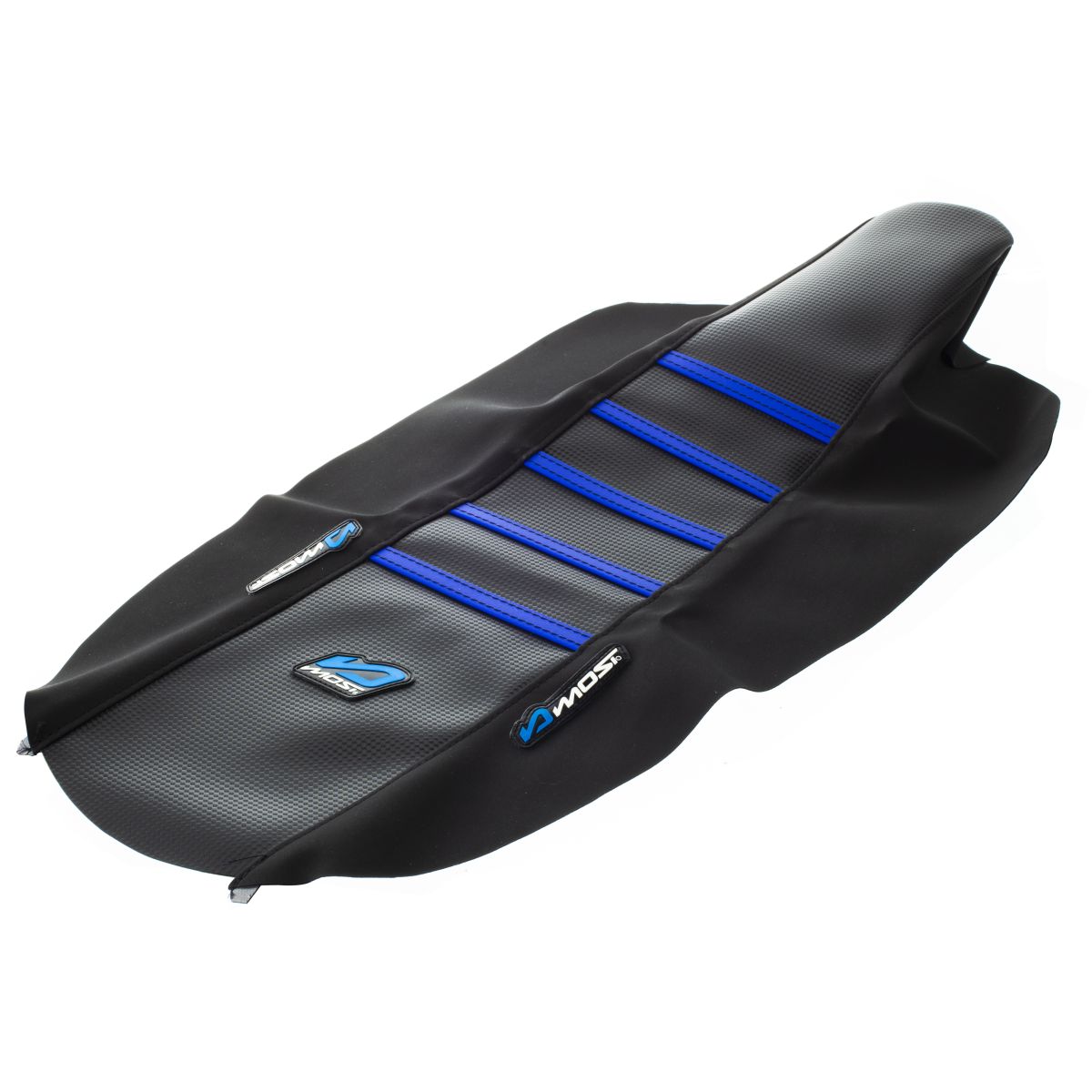 🏍️ Funda de asiento Most Racing negra con tiras azules para Yamaha DT 50 y MBK X-Limit 50cc 🔵