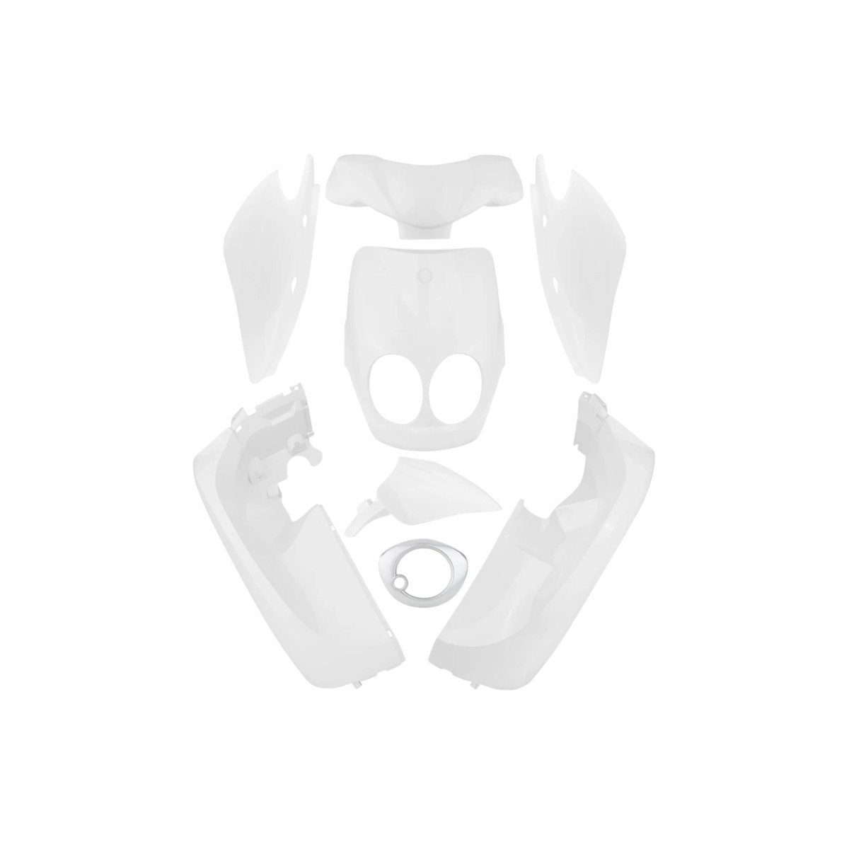 Kit carenado completo de 8 piezas para MBK Ovetto 50 y YAMAHA Neos 50 fabricados a partir de 2011 y con cuentakilómetros digital, de color blanco.