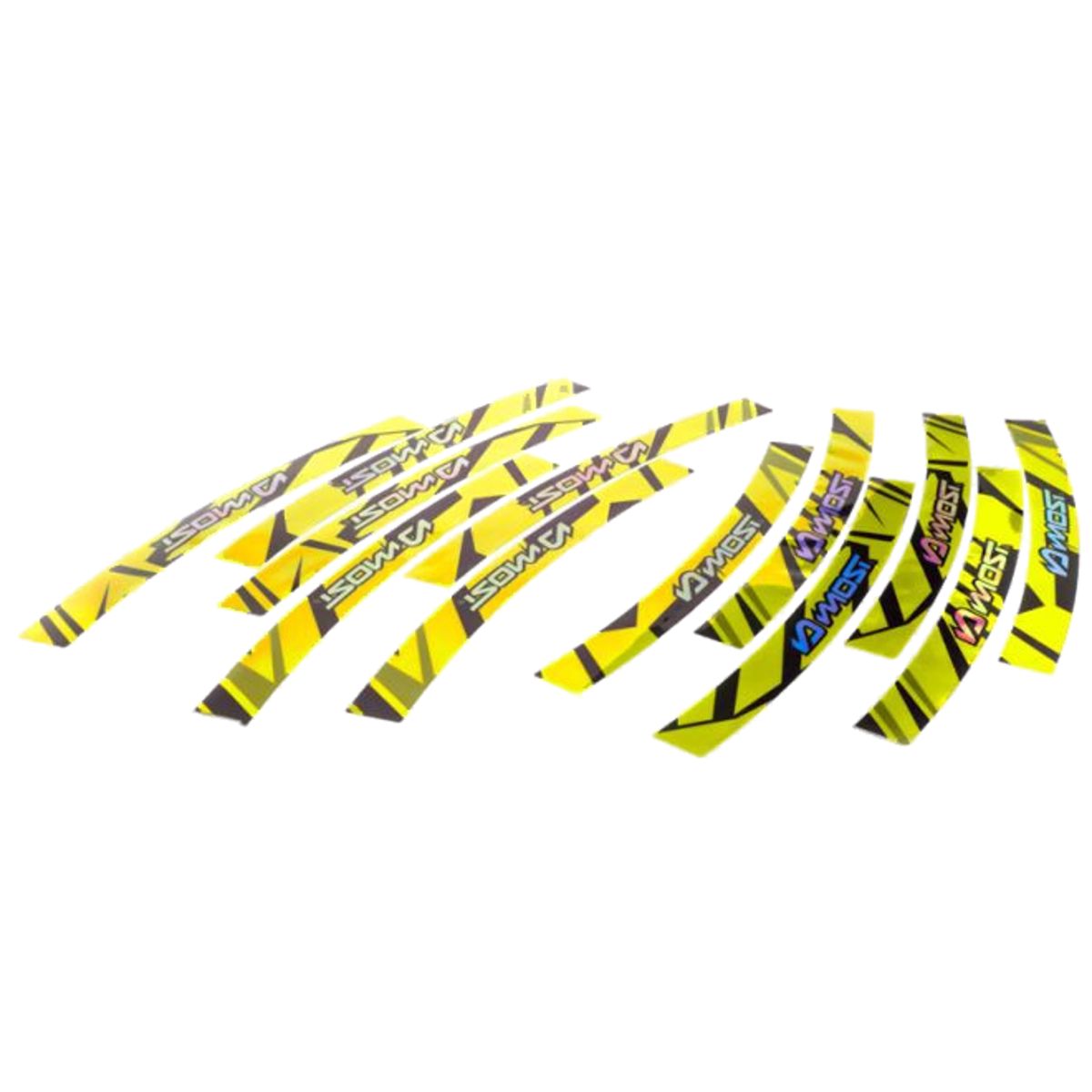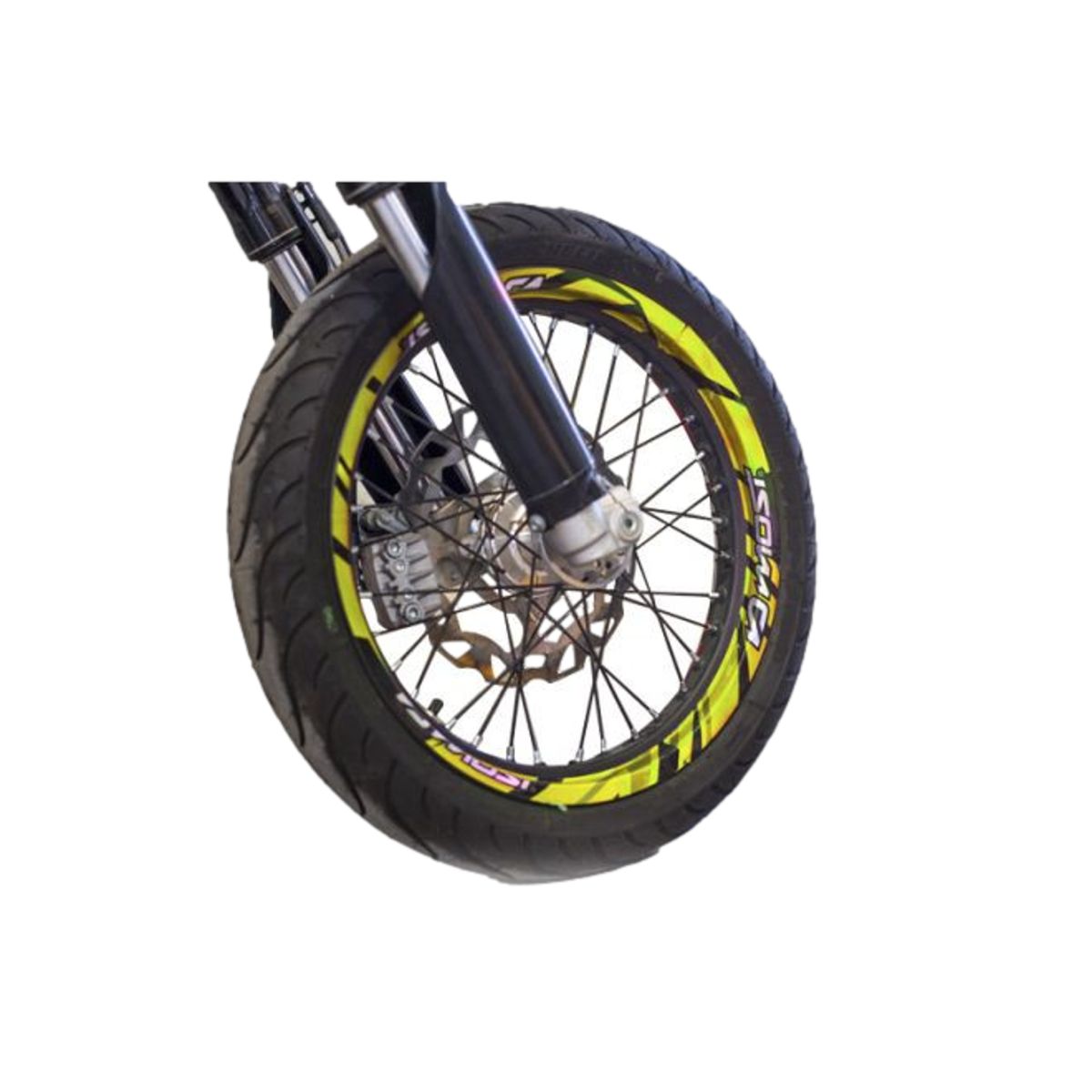 Personaliza las llantas de tu moto de 50 cc o de tu scooter con el kit de decoración Most amarillo holográfico, adecuado para llantas de hasta 17 pulgadas.