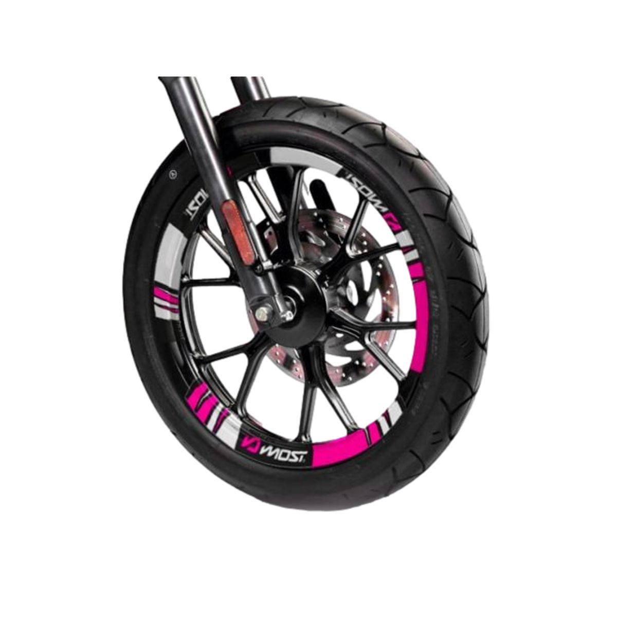 Bixess le presenta este kit de decoración Most para llantas de moto o scooter de hasta 17 pulgadas de diámetro. Gracias a su efecto 3D mate y su color rosa, aporta un toque deportivo a tu vehículo. Este kit cuenta con tratamiento antiarañazos, antisalpicaduras y anti-UV para aumentar su durabilidad. Compuesto por 12 elementos, podrás decorar las llantas delanteras y traseras. Además, este kit es fácil de instalar.