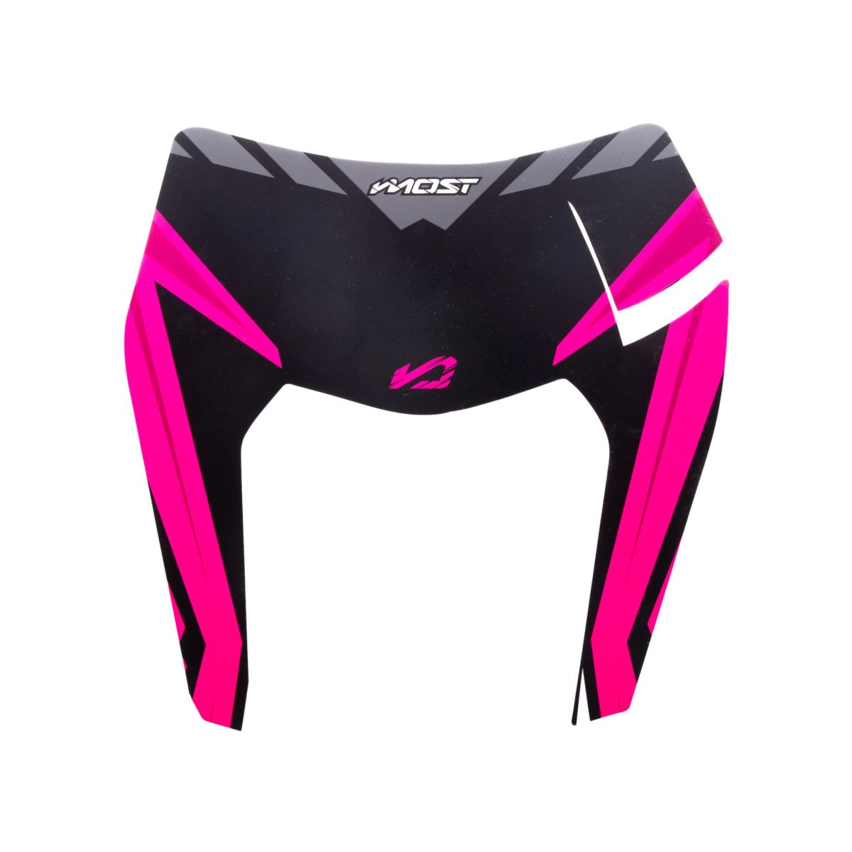 Este kit de decoración Most Racing está especialmente diseñado para la placa frontal tipo KTM, ofreciendo un acabado de alta calidad y resistencia. Su color rosa aporta un estilo único a tu moto mientras protege la superficie del faro. Fabricado en vinilo duradero, este kit garantiza una instalación sencilla y un aspecto uniforme y profesional.