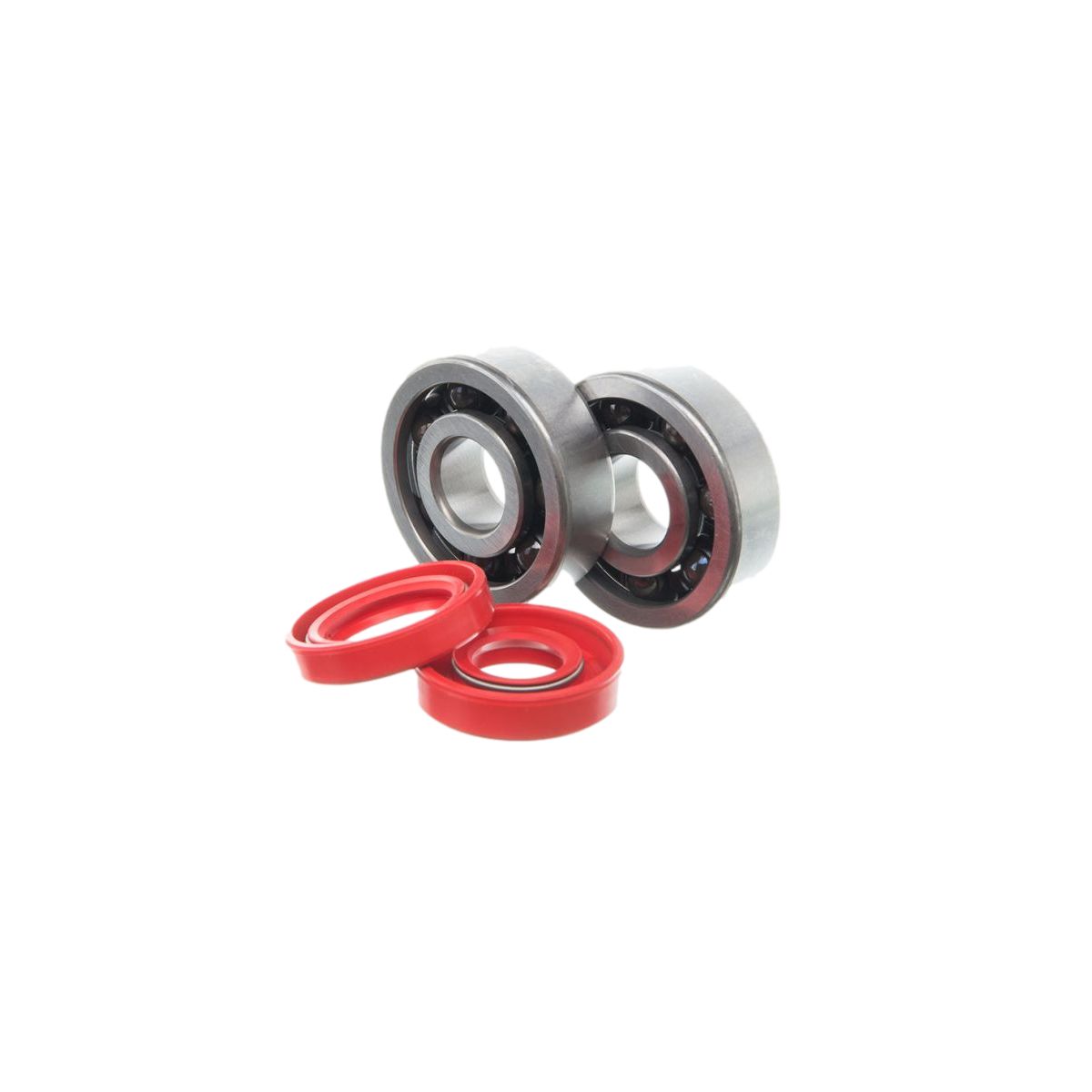 Mejora la durabilidad y el rendimiento de tu motor Minarelli AM6 con este kit de alto rendimiento 🏁: 2 rodamientos 6303 C3 con jaula de poliamida y bolas de cerámica 💎, y 2 retenes rojos de vitón 🔧. Compatible con cigüeñales de 17 mm de eje.