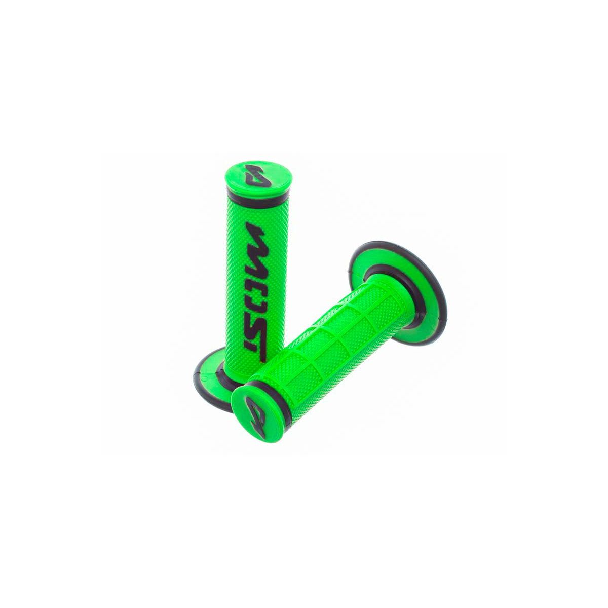 Puños Most FUSION de goma premium bicolor verde, confort y agarre perfecto para manillares de 22 y 28 mm.