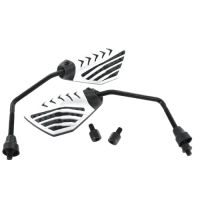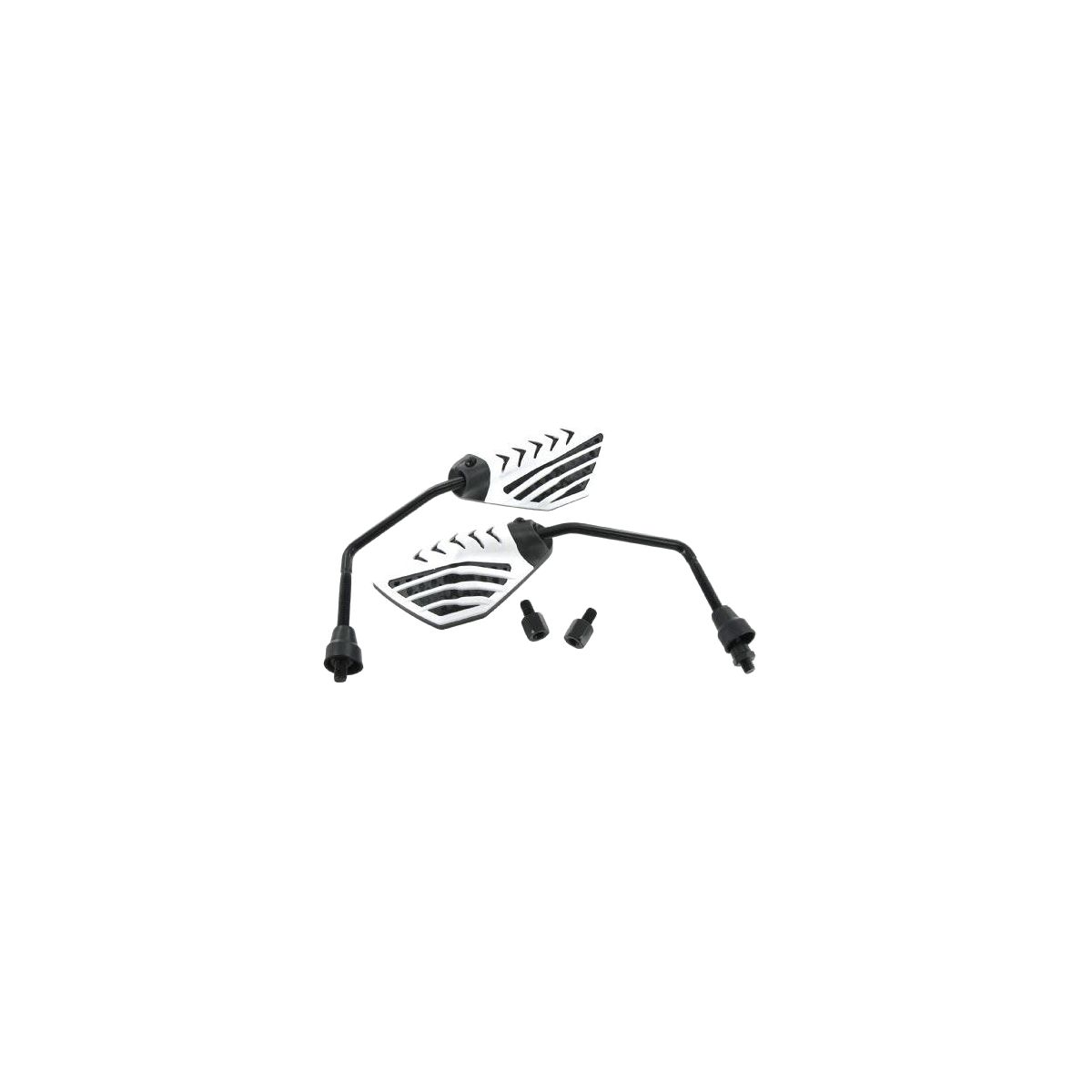 Dale estilo y funcionalidad a tu scooter o moto con este par de espejos Soko 🏍️. Universales M8, varillas y parte trasera negra con carcasa trasera blanca ajourada 🔹. Incluye 2 tuercas de fijación para una instalación sencilla.