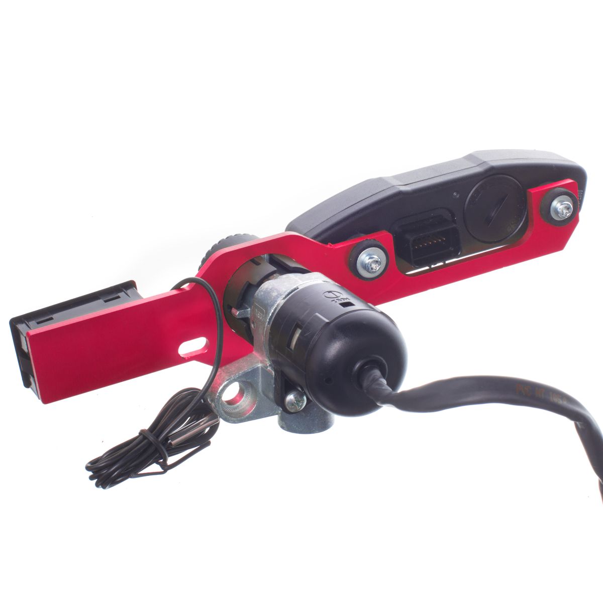 Placa de desplazamiento de velocímetro MOST Racing color rojo para supermotards 50cc Rieju MRT y MRT Pro. Permite reposicionar el velocímetro para que la placa cross quede perfectamente ajustada y legible.