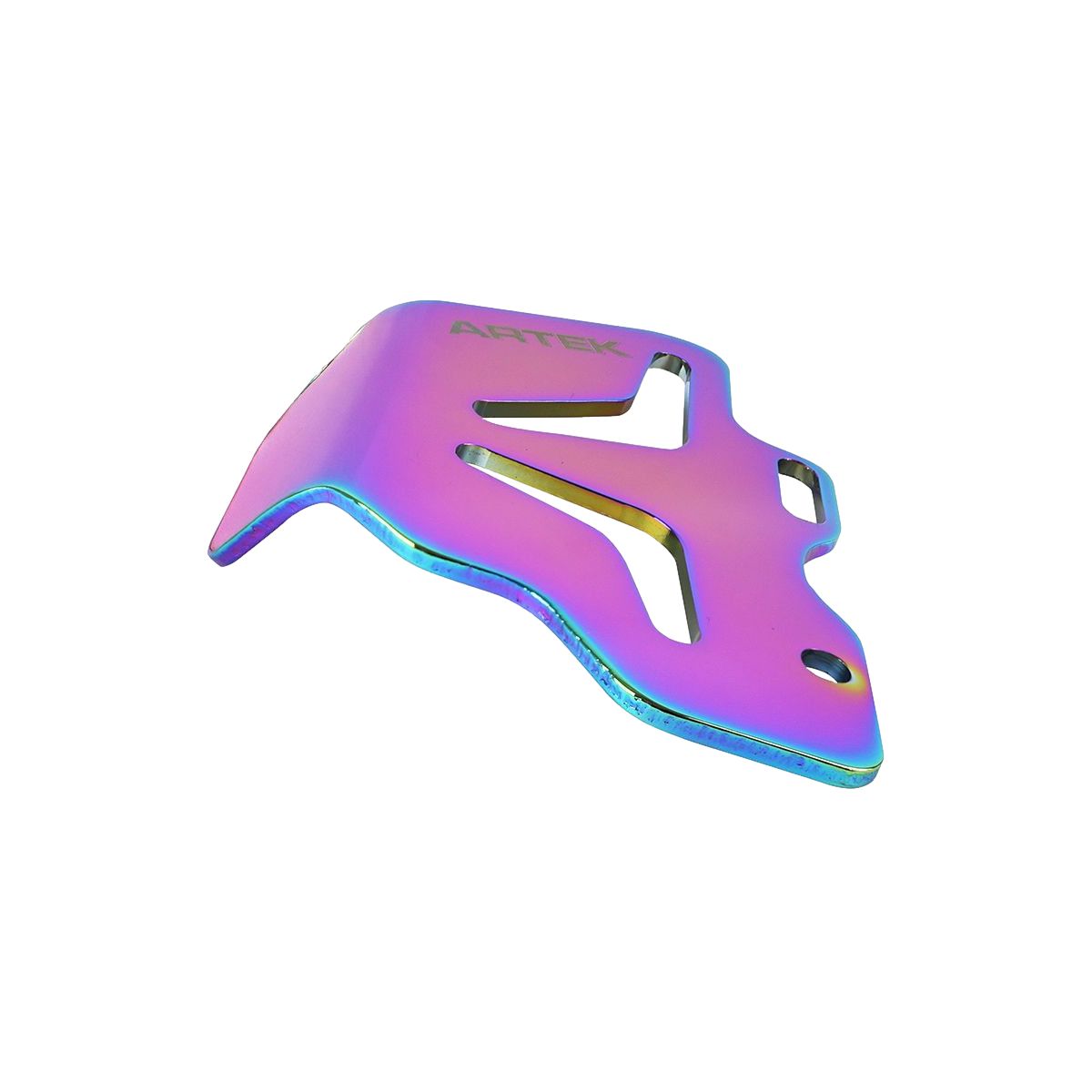 Te presentamos este protector de bomba de freno trasera de la marca ARTEK, anodizada de color neocromado. Su intereje de fijaciones va de 40 a 50mm, lo que la hace compatible con la mayoría de las motos de 50cc. Fabricada en aluminio, combina ligereza ( ¡ 59g ! ) y solidez . Esta pieza se entrega con dos casquillos y dos tornillos.
