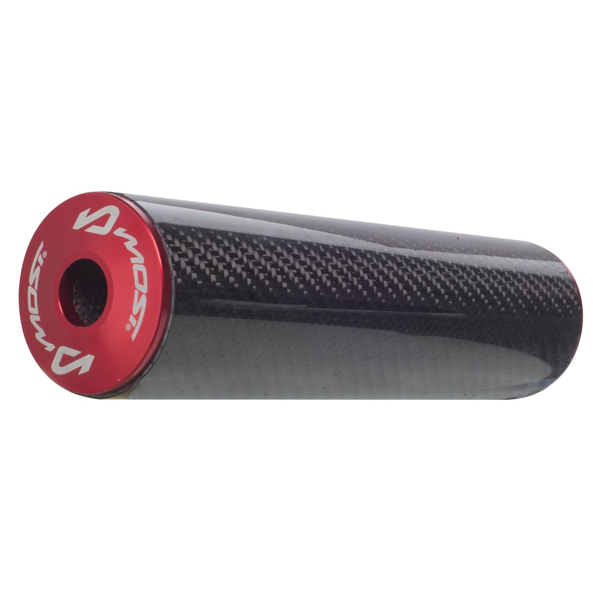 💨 Silenciador MOST de alto rendimiento en aluminio aspecto carbono y rojo para motores 80 a 100cc.