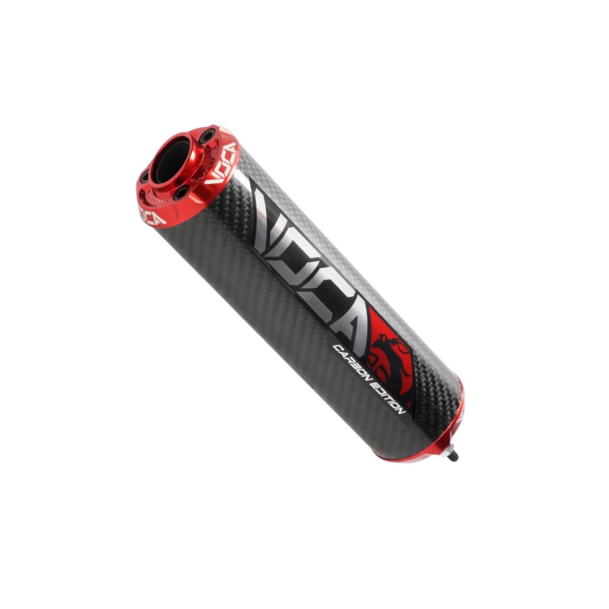 🔥 El silenciador , de carbono con sus cápsulas hechas en aluminio anodizado rojo con la antigoa gravura VOCA.