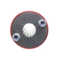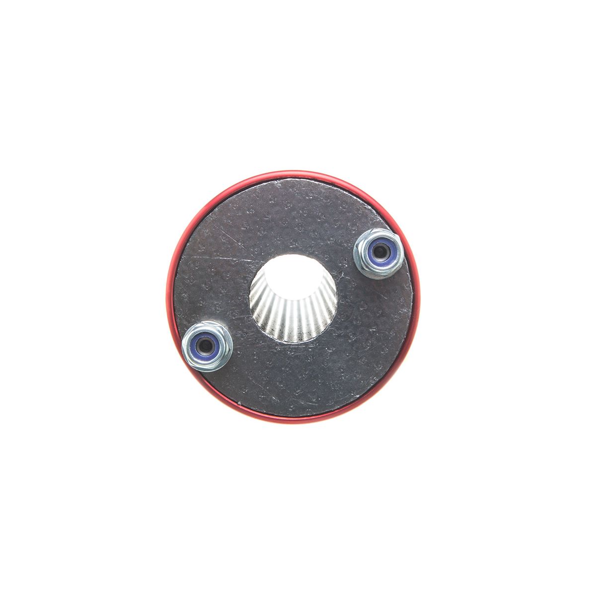 El cuerpo de aluminio mecanizado está anodizado plata y rojo, ofreciendo resistencia al calor y acabado duradero. Las cápsulas de entrada y salida están talladas en masa y equipadas con juntas tóricas para reducir vibraciones y garantizar estanqueidad. Una junta de papel de 0,8 mm completa la unión con el tubo.
