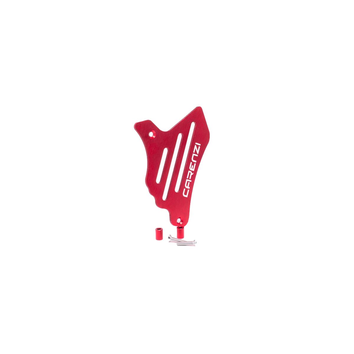 🛡️ Protege el piñón de salida de tu moto con estilo gracias a esta tapa Carenzi de aluminio rojo.