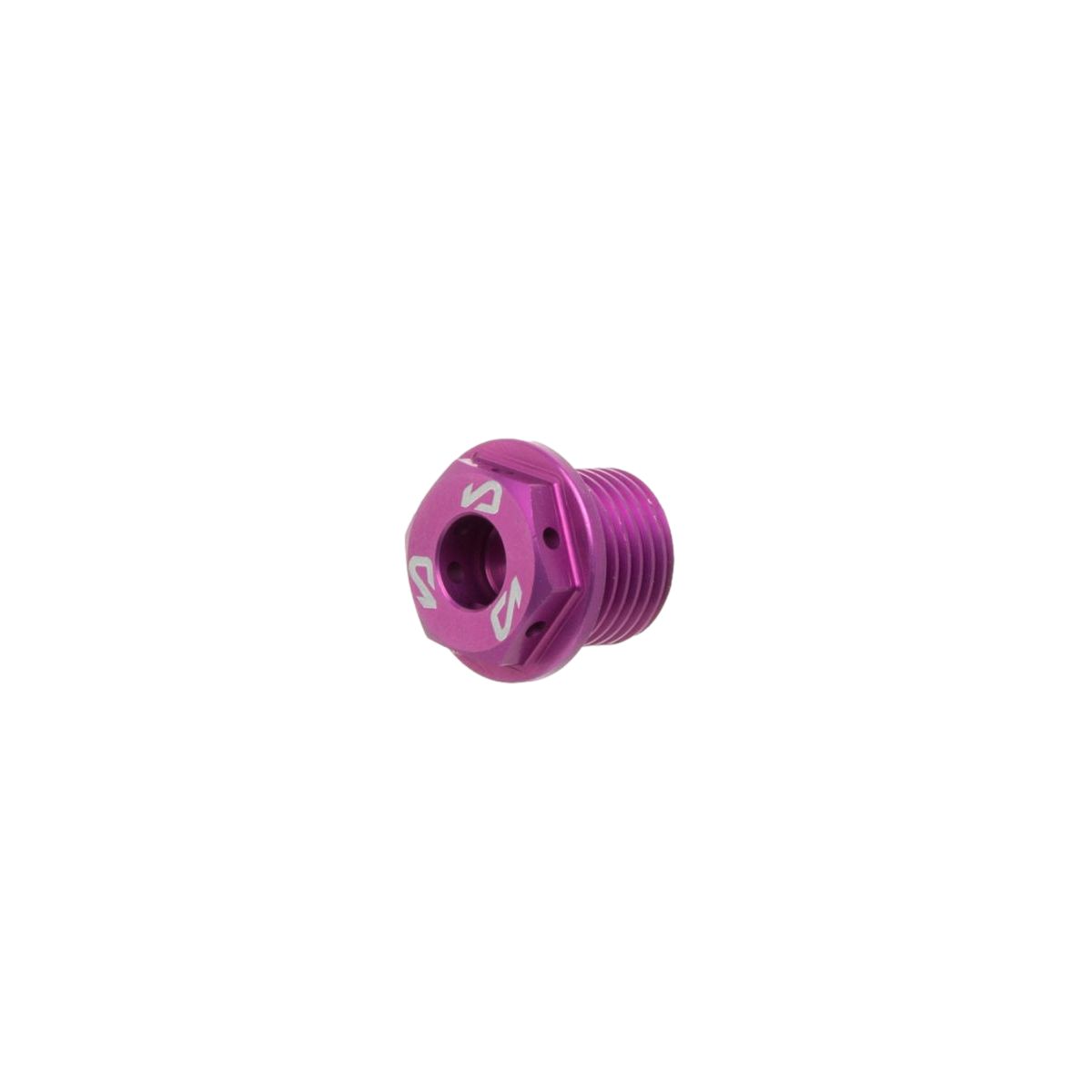 🎨 Tapón de cárter de aceite Most en aluminio anodizado violeta 🟣, rosca M16 x 1,5, cabeza hexagonal corta 🔧, incluye junta tórica. Compatible con Derbi Euro 2, Euro 3 y Euro 4.