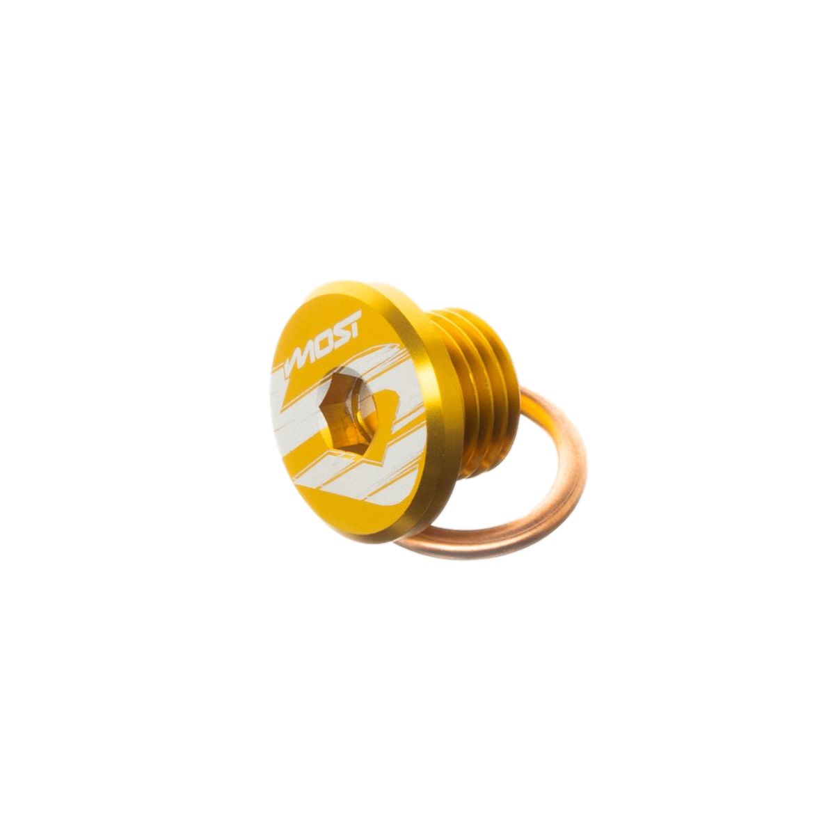 Most Racing ofrece este tapón de culata de aluminio CNC anodizado en color oro, pensado para motos Derbi Euro 4. Sustituye de manera eficiente la sonda de temperatura original manteniendo un diseño plano y funcional. Compatible con: