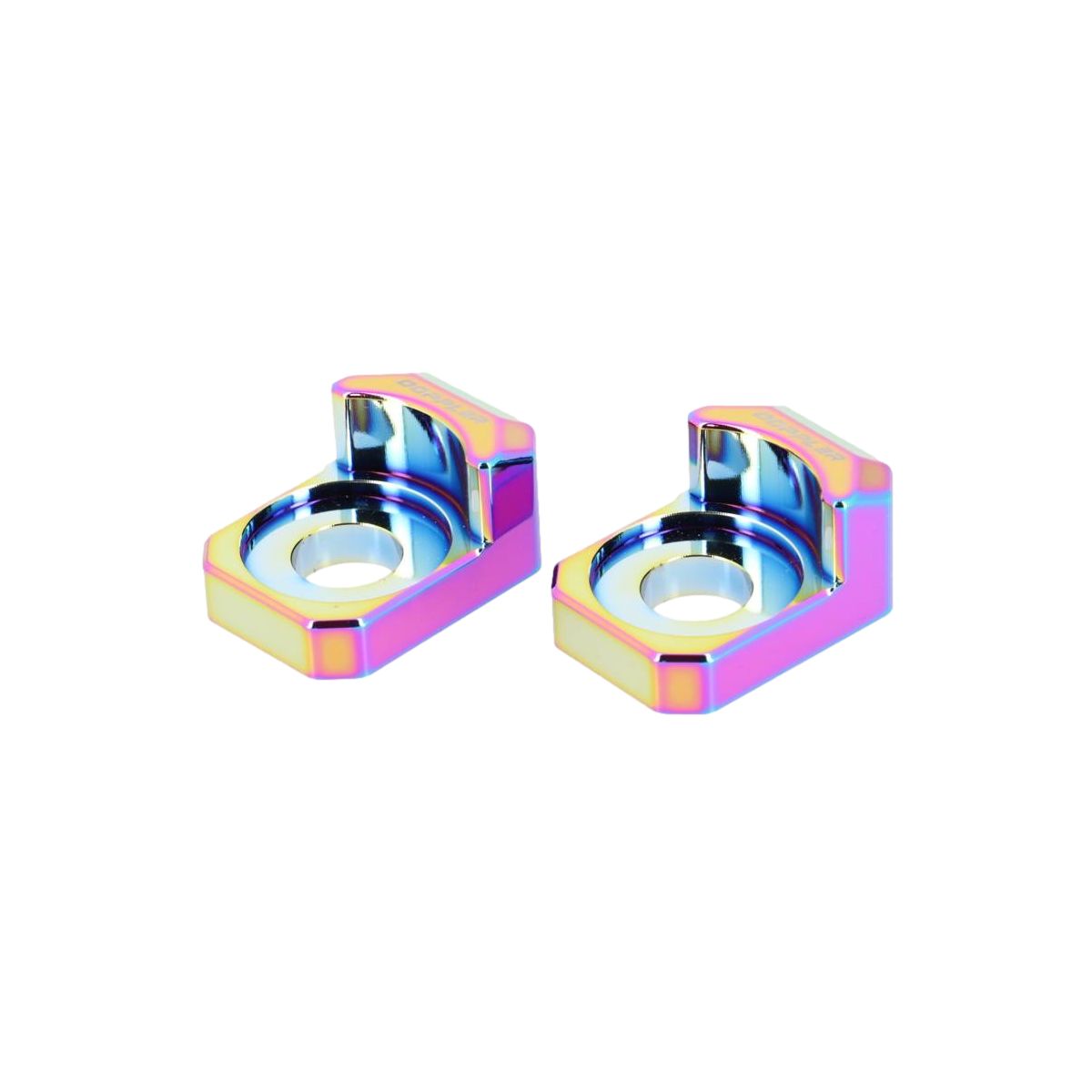 Dale más estilo a tu moto con este par de tensores de cadena color neocromado de la marca DOPPLER, en aluminio para más robustez y menos peso. Se montan en basculante de acero y la graduación inscrita en ellos permite alinearlos con precisión con la cadena.