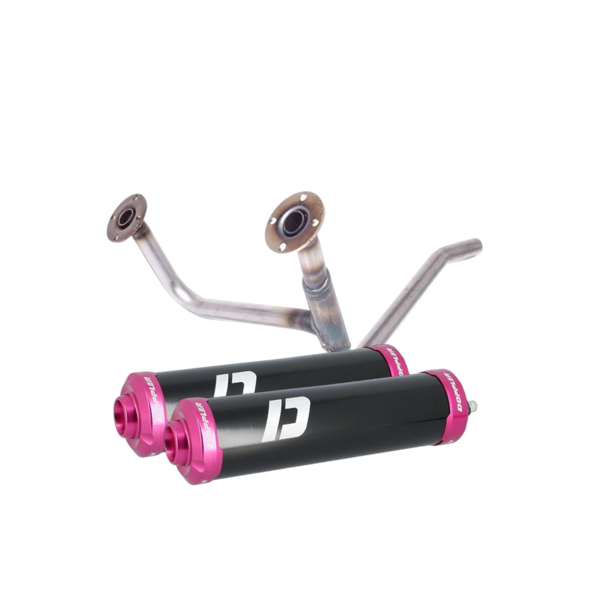 ✨ Exclusivité Bixess la double sortie Most avec deux silencieux Doppler Noirs et Roses, pour Rieju MRT fabriquées à partir de 2022. Vendu avec son kit de fixation, deux colliers de silencieux diamètre 60mm et deux bandes de silicone noires.