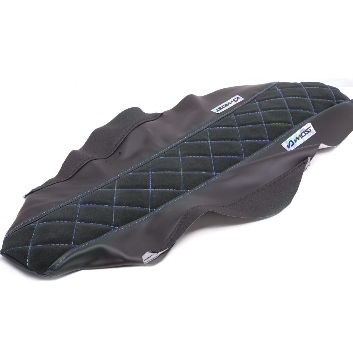 🏁 Les surpiqûres bleues contrastent élégamment avec le noir, donnant à la selle un look racing dynamique et moderne. Les flancs en textile plastifié et texturé assurent un maintien optimal des genoux, tandis que le logo MOST holographique cousu apporte une finition premium.