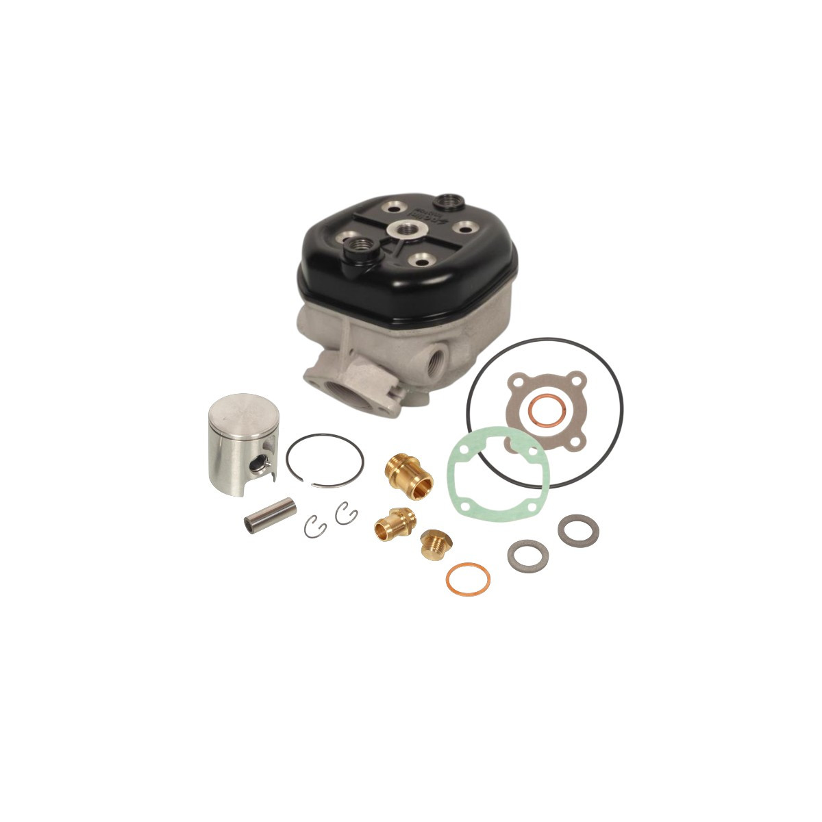 ✨ Découvrez le kit cylindre 50cc en aluminium de la fameuse marque italienne POLINI, conçu pour Peugeot 103 à refroidissement liquide. C'est un cylindre de 40.2mm de diamètre avec 6 transferts d'admission et une sortie d'échappement en W. Il est livré complet avec sa culasse, son piston mono-segment Ø 40.2mm, le segment à une épaisseur de 1mm, son axe de 12mm, ses raccords de durites, son bouchon, sa pochette de joints et ses circlips.