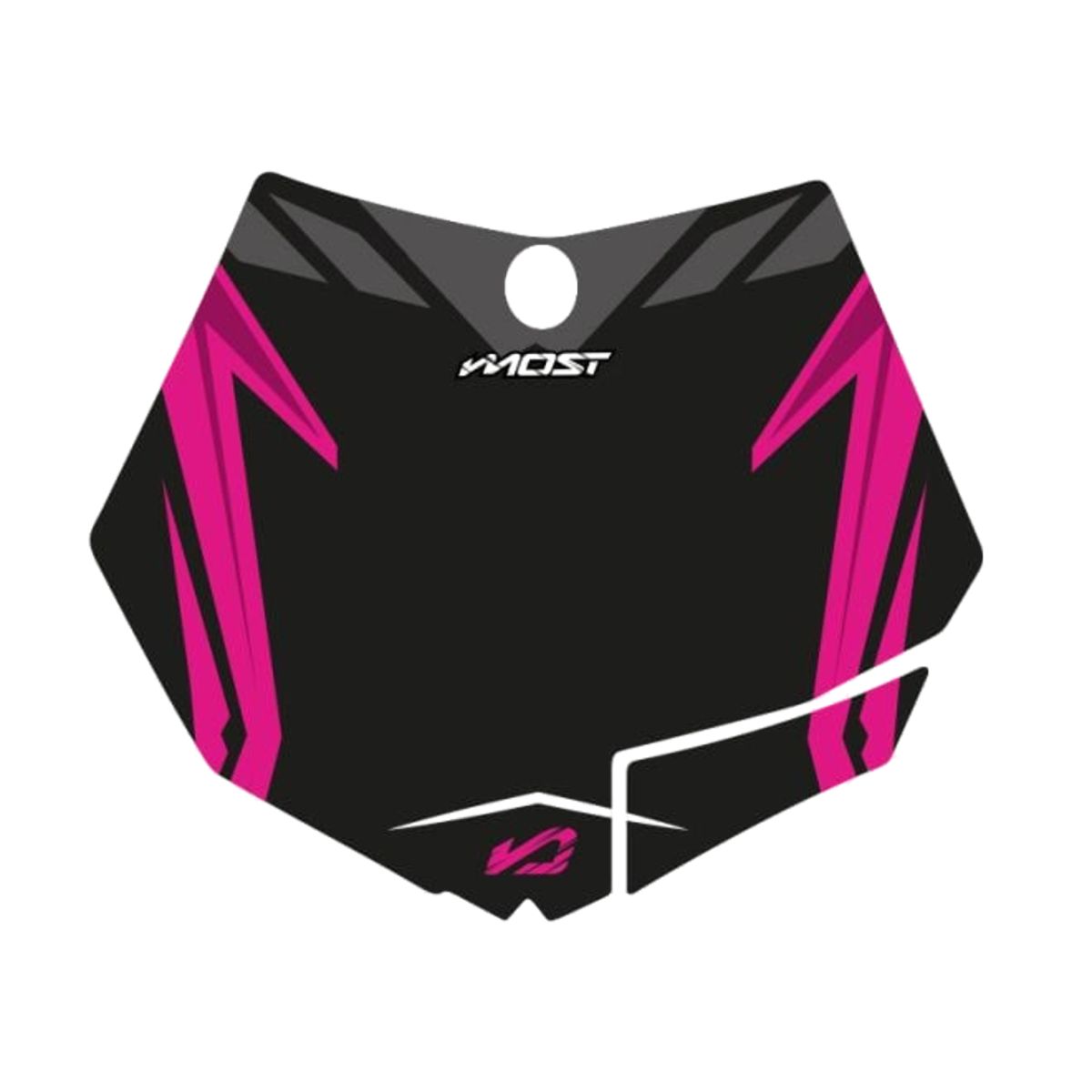 Kit déco Most Racing pour la plaque phare des KTM 125 SX 2007-2012. Couleur noir/rose, design assorti au kit déco complet et espace prévu pour numéro ou pseudo.