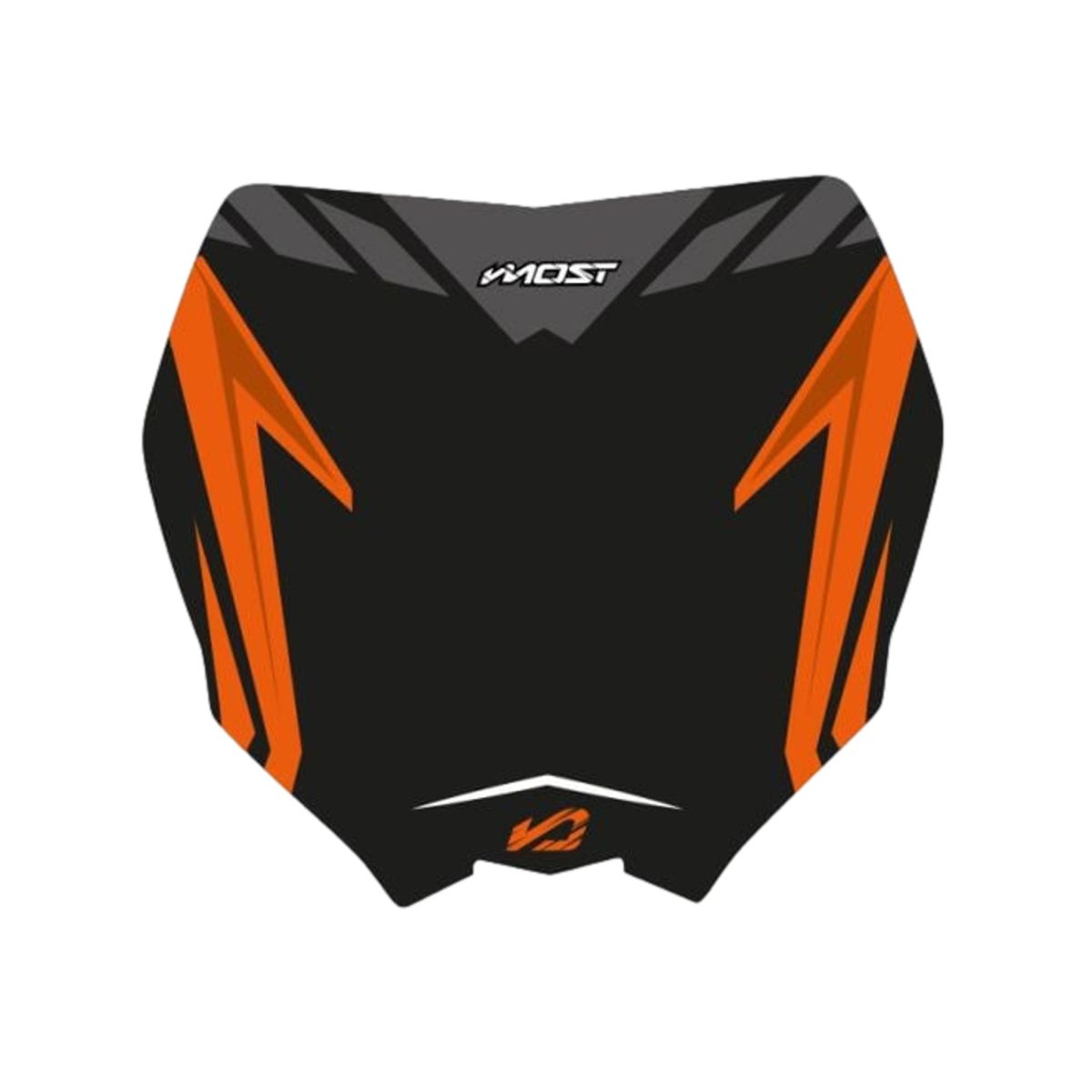 Kit déco Most Racing pour plaque phare Yamaha 125 YZ 2006-2014. Design assorti au kit déco complet, de couleur orange, avec espace prévu pour numéro ou pseudo.