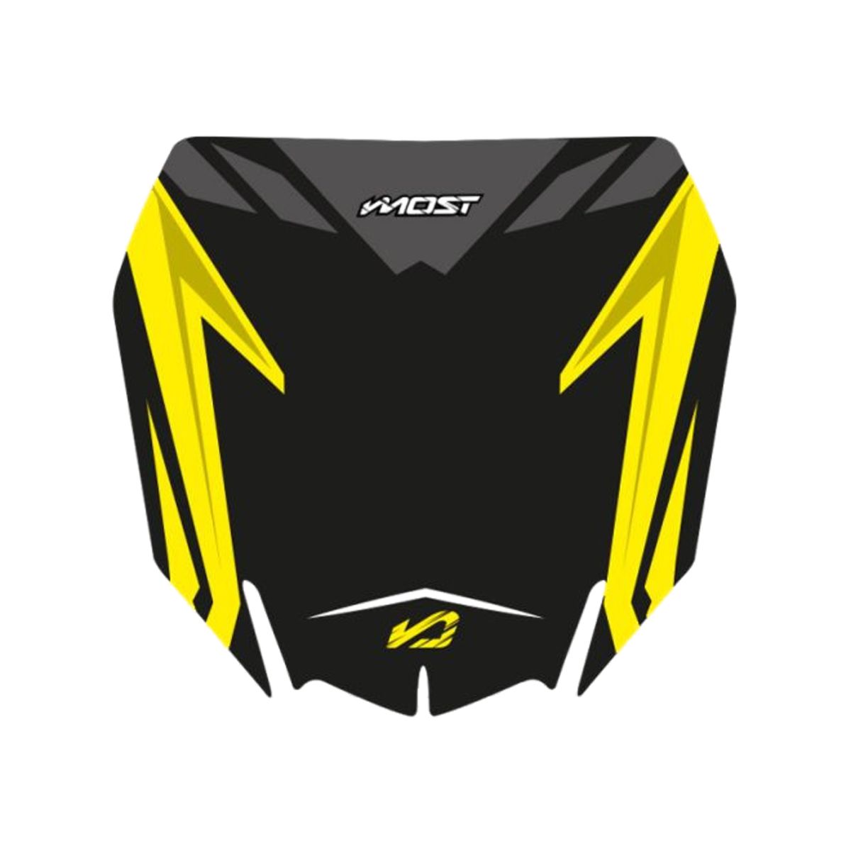 Kit déco Most Racing pour plaque phare Yamaha 450 YZF 2018-2022. Design assorti au kit déco complet, de couleur jaune, avec espace prévu pour numéro ou pseudo.