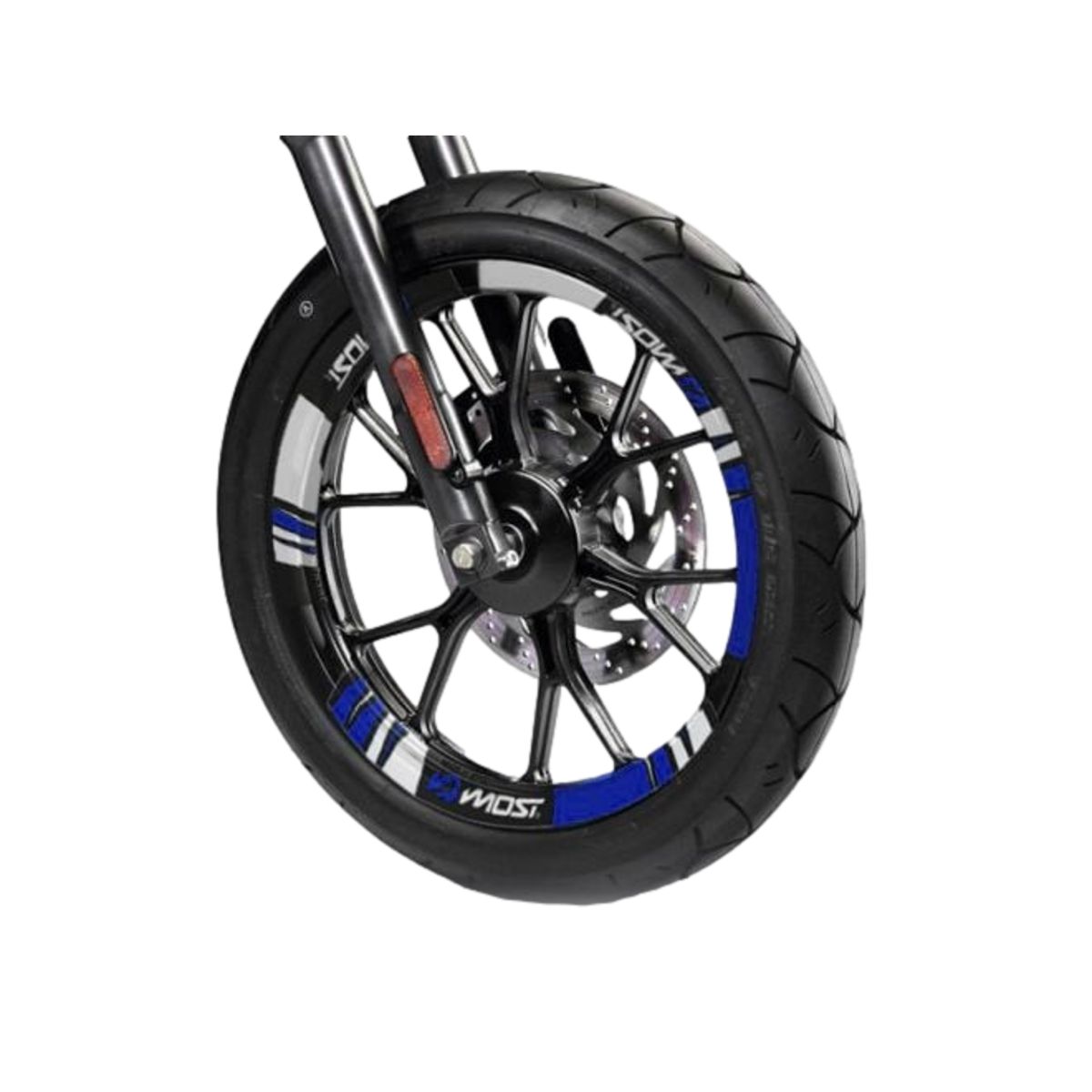 Personnalisez les jantes de votre moto 50 ou de votre scooter grâce au kit déco Most bleu pour les jantes jusqu'à 17 pouces.