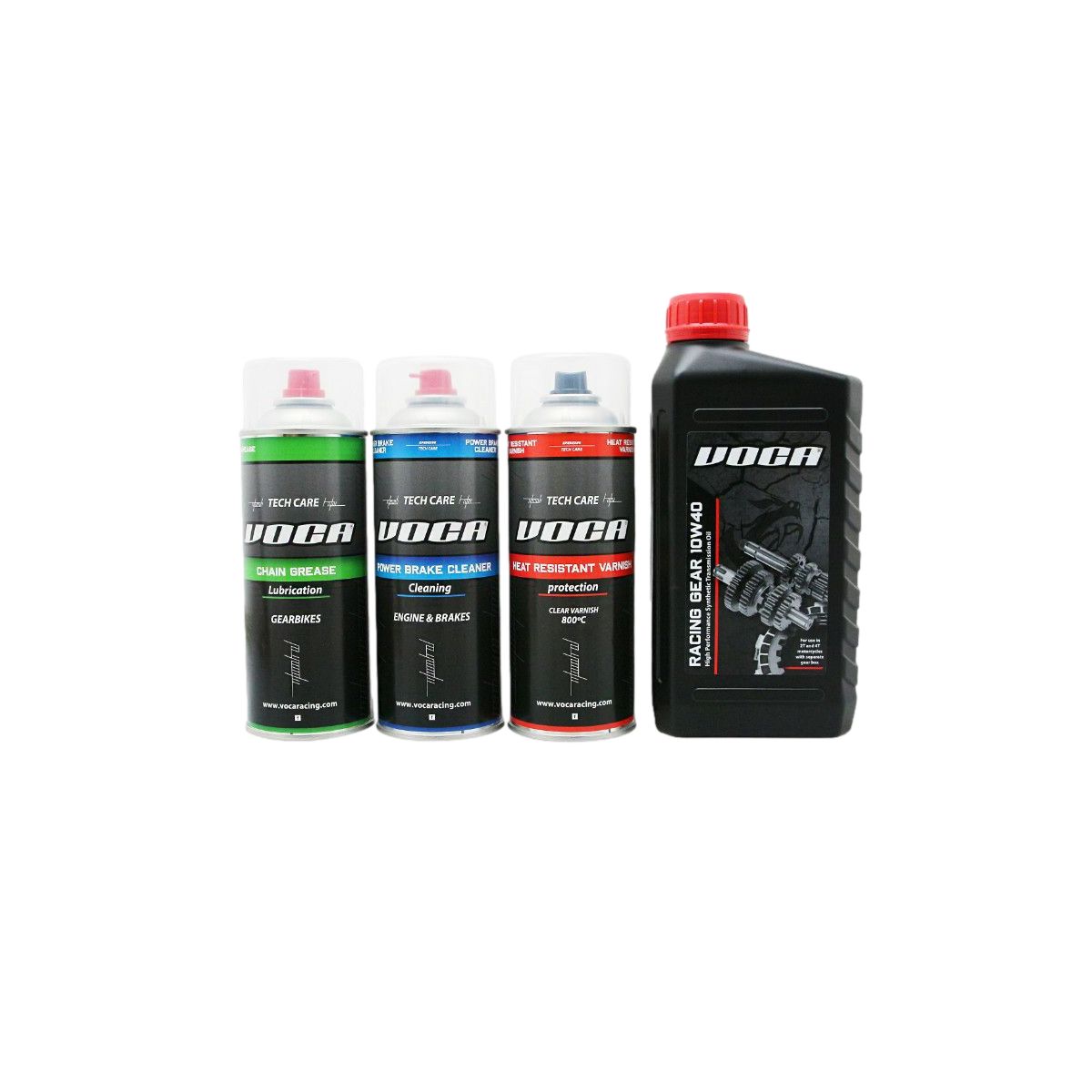 Assurez la longévité et la performance de votre moto 2 temps grâce au kit d’entretien VOCA Tech-Care. Ce kit complet contient tout le nécessaire pour nettoyer, protéger et lubrifier votre moto, avec des produits spécialement formulés pour un usage sur chaînes et moteurs 2 temps.