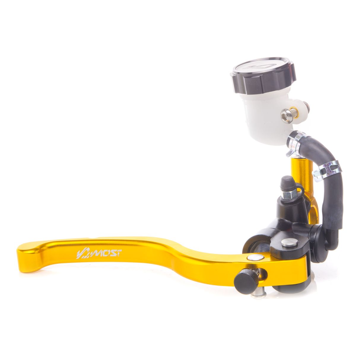 Anodisé et gravé MOST, ce maître-cylindre est disponible en plusieurs combinaisons de coloris pour s’adapter à votre préparation.