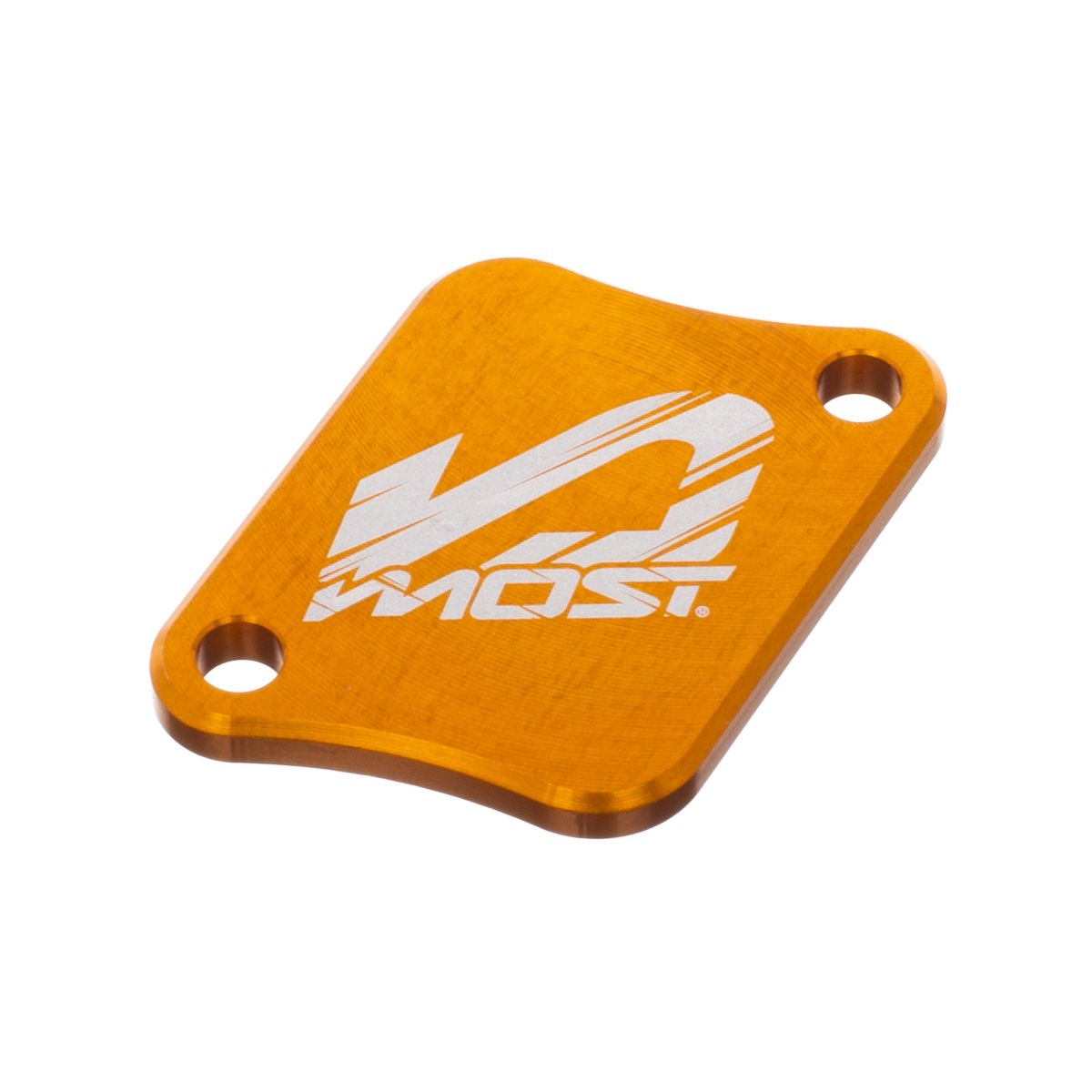 Protégez efficacement votre moteur avec cet obturateur de pompe à huile MOST orange. Adapté aux moteurs Derbi et AM6, il bloque l’ouverture laissée par la pompe d’origine lors du passage à un graissage direct. Son design trapézoïdal distinctif et sa couleur anodisée orange apportent une touche esthétique tout en restant fonctionnel. Le logo MOST gravé au laser garantit une durabilité maximale et un look soigné.