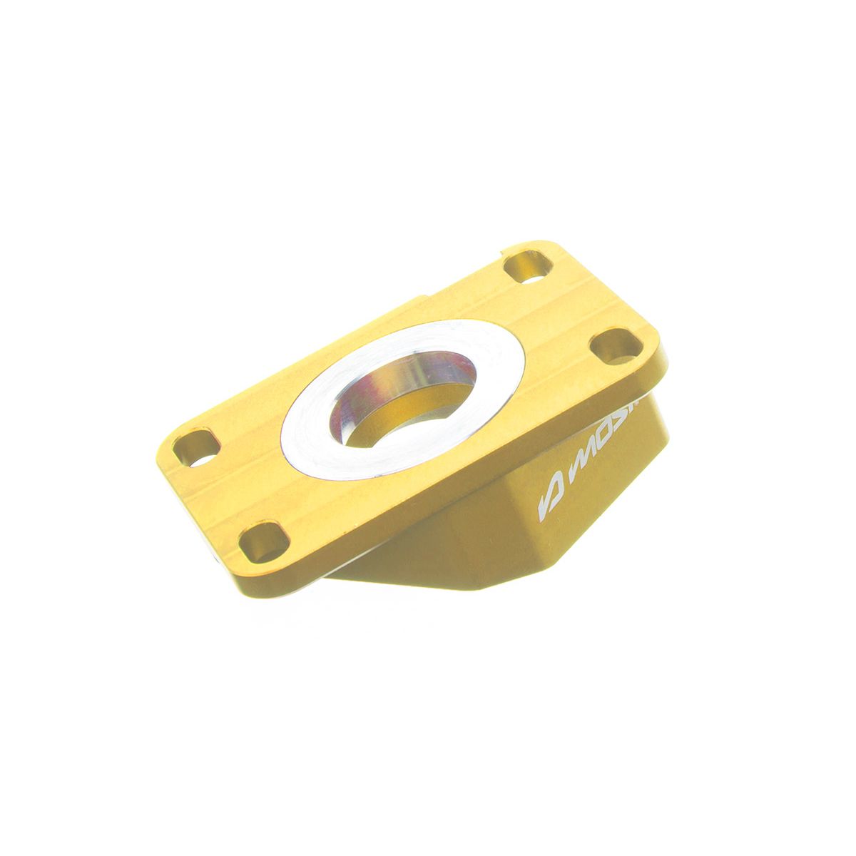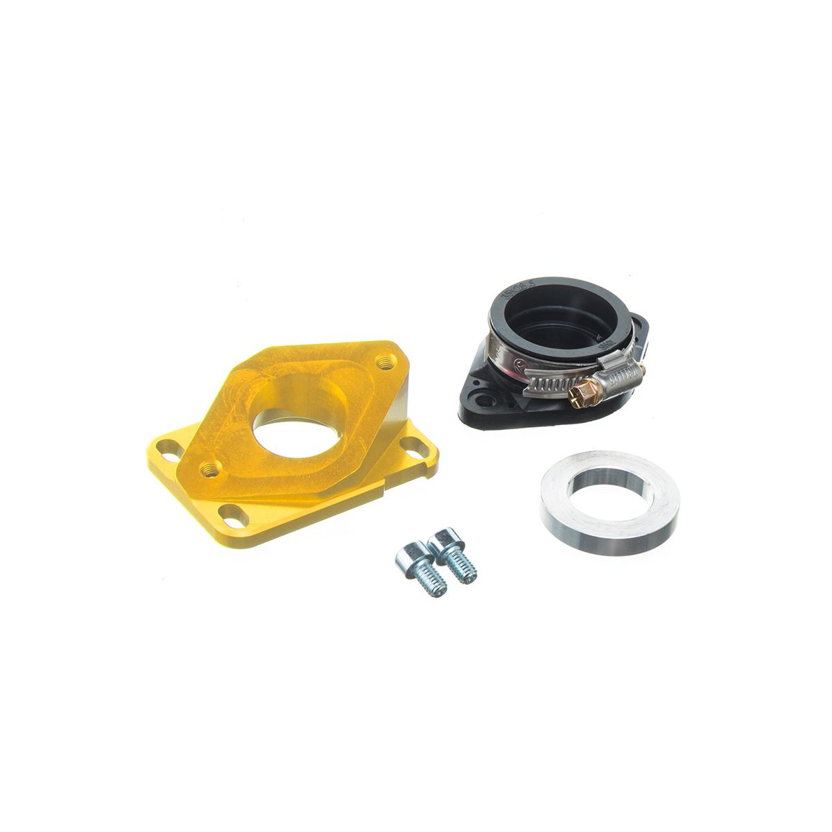La pipe d’admission MOST or permet d’installer facilement des carburateurs PWK de 21 à 28 mm sur les moteurs AM6 et Derbi 🛞.