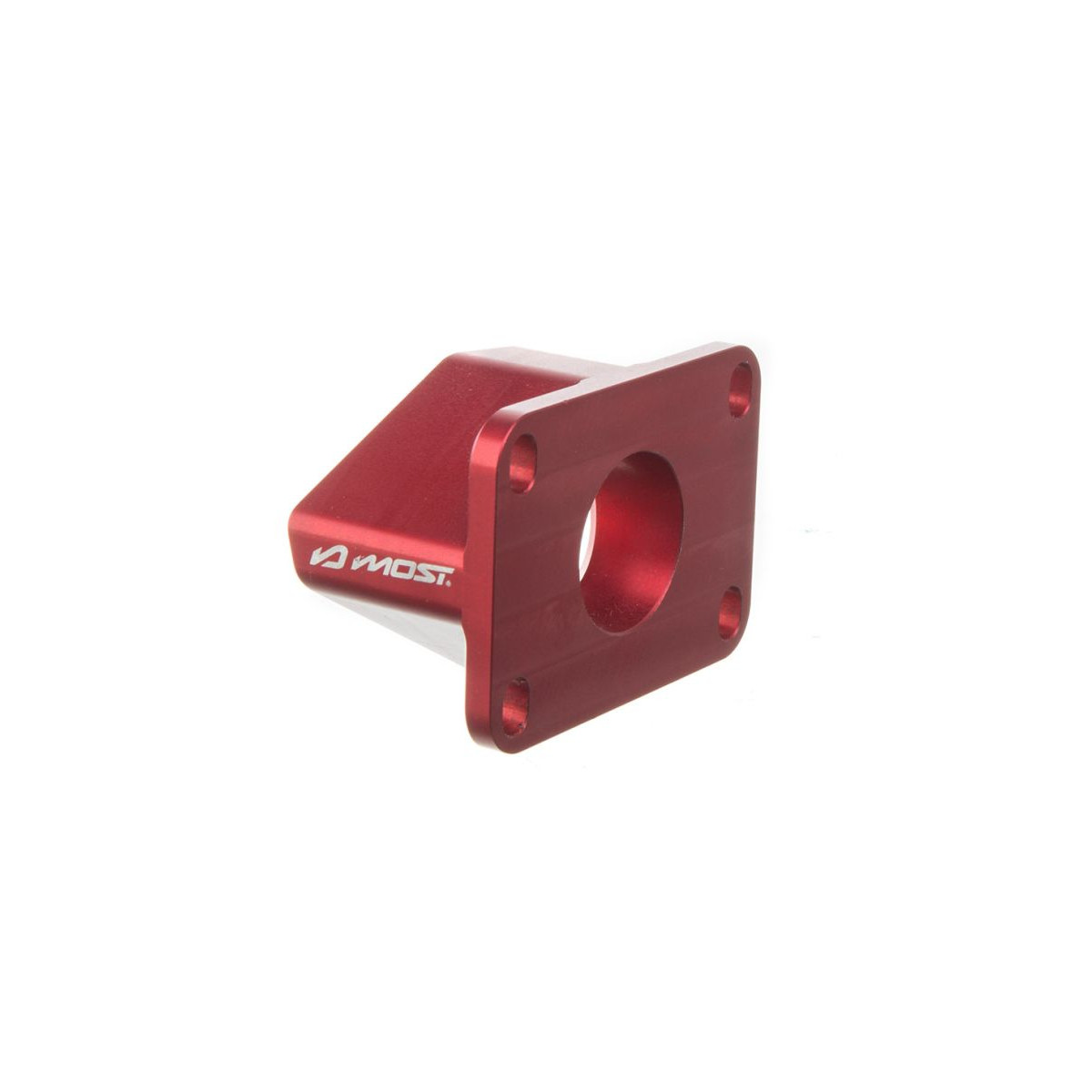 Cette pipe d’admission inclinée en aluminium rouge combine légèreté et robustesse pour les préparations moteur sur AM6 et Derbi. Son design offre un passage optimal du carburant, tout en laissant la possibilité aux pilotes de personnaliser l’adaptation pour leurs gros carburateurs PWK de 36 à 40 mm.