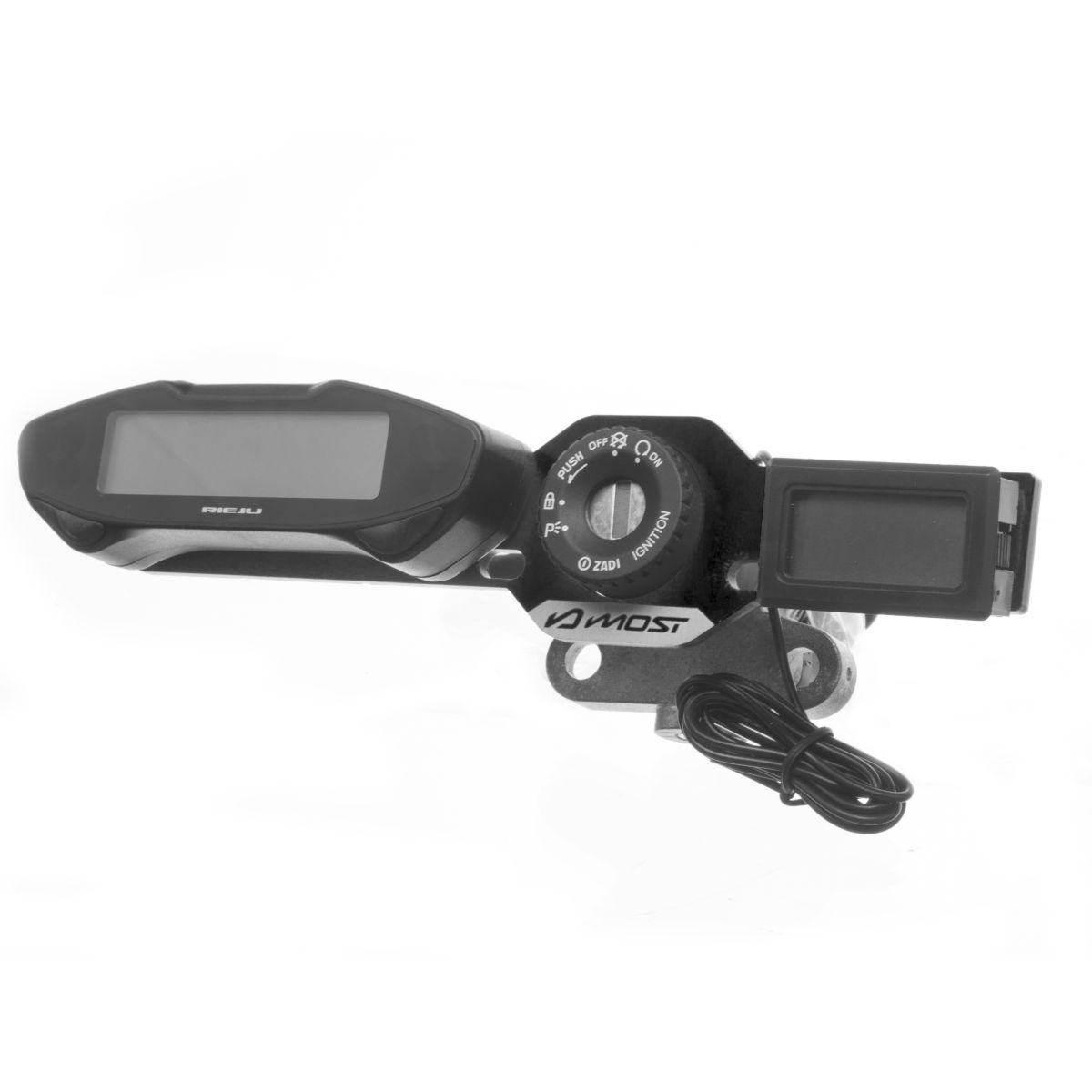 Beaucoup de supermotards 50cc Rieju MRT et MRT Pro remplacent la plaque phare d’origine par une plaque numéro type cross pour des raisons esthétiques, ce qui rend la position du compteur de vitesse incompatible. MOST Racing a conçu cette platine pour déporter le compteur à gauche ou à droite du contacteur à clé.