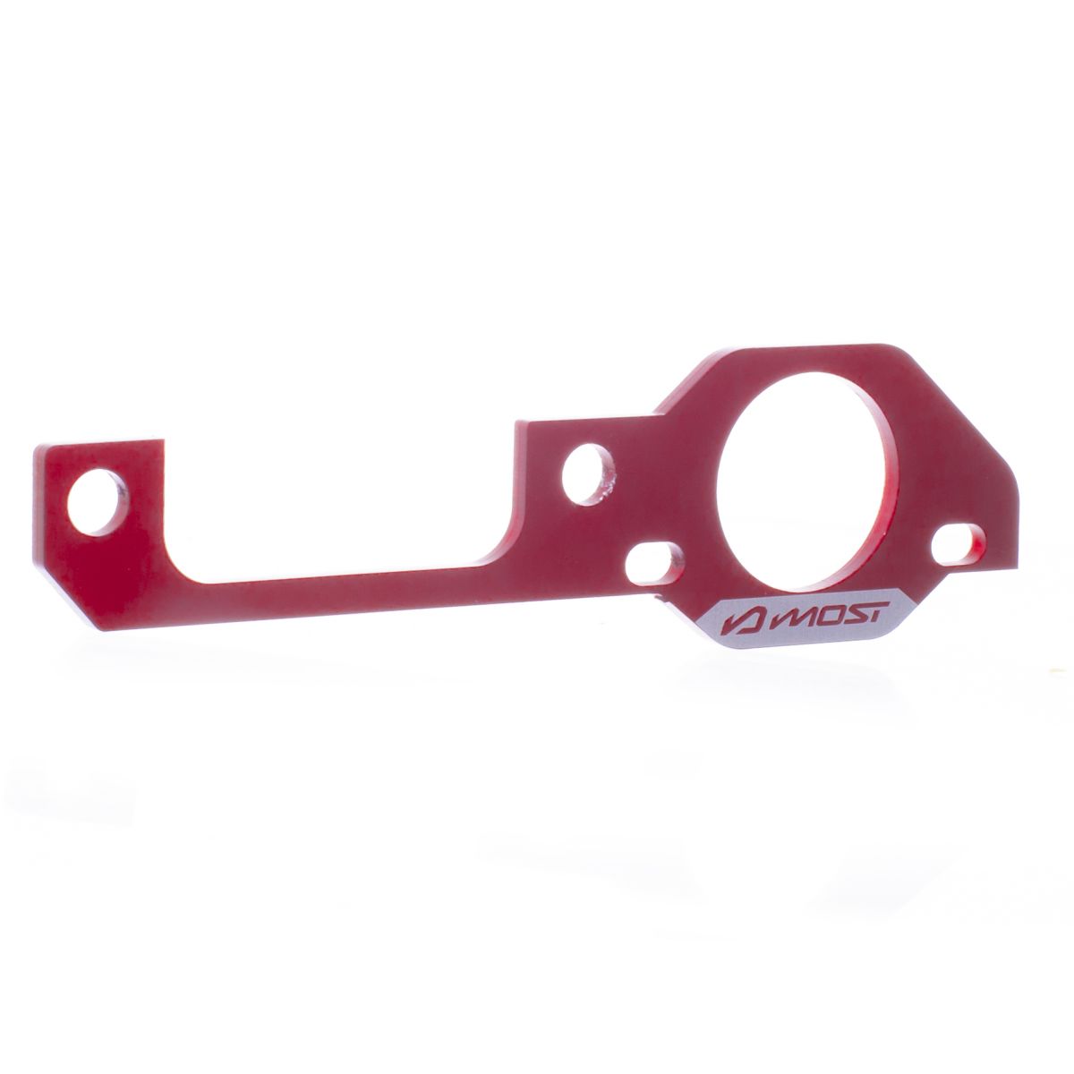 Sur de nombreux supermotards 50cc Rieju MRT et MRT Pro, la plaque numéro type cross remplace le phare d’origine, ce qui rend difficile la fixation du compteur. Cette platine rouge Most permet de déporter le compteur de vitesse à gauche ou à droite du contacteur à clé, garantissant une lecture claire et une plaque cross bien plaquée sur le té de fourche supérieur.