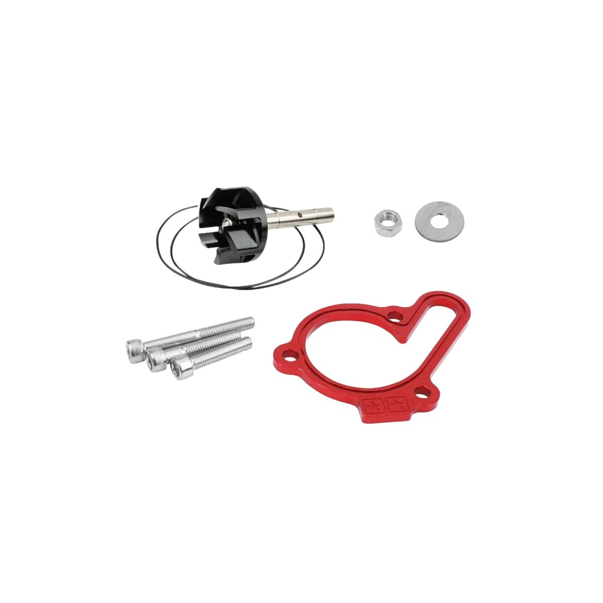 ⚡ Turbine surdimensionnée en aluminium CNC anodisé rouge : elle augmente le débit d’eau et limite le risque de surchauffe, essentiel pour les petits radiateurs d’origine.