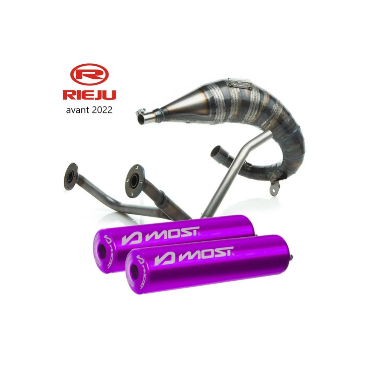 🏍️ Pack complet full Most Racing, comprenant un pot d'échappement 50cc 70cc passage haut, un tube de fuite double sortie, deux silencieux violet, tout le nécessaire de fixation pour le pot et la double sortie et une bride en diamètre 28/32mm. Ce pack est prévu pour motos 50cc Rieju MRT, Mrt Pro et MRT Trophy d'avant 2022.