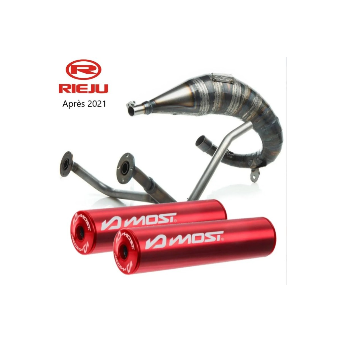 🏍️ Pack complet full Most Racing, comprenant un pot d'échappement 50cc 70cc passage haut, un tube de fuite double sortie, deux silencieux rouge, tout le nécessaire de fixation pour le pot et la double sortie et une bride en diamètre 28/32mm. Ce pack est prévu pour motos 50cc Rieju MRT, Mrt Pro et MRT Trophy à partir de 2022.