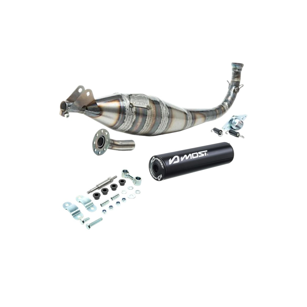 Nous vous proposons ce pot d'échappement Most Racing pour Peugeot 103 SPX et 103 RCX à refroidissement liquide livré avec silencieux noir et tout le système de fixation. Le pot d'échappement Most est un très beau pot roulé soudé main, offrant autant de style que de performances à votre mob.