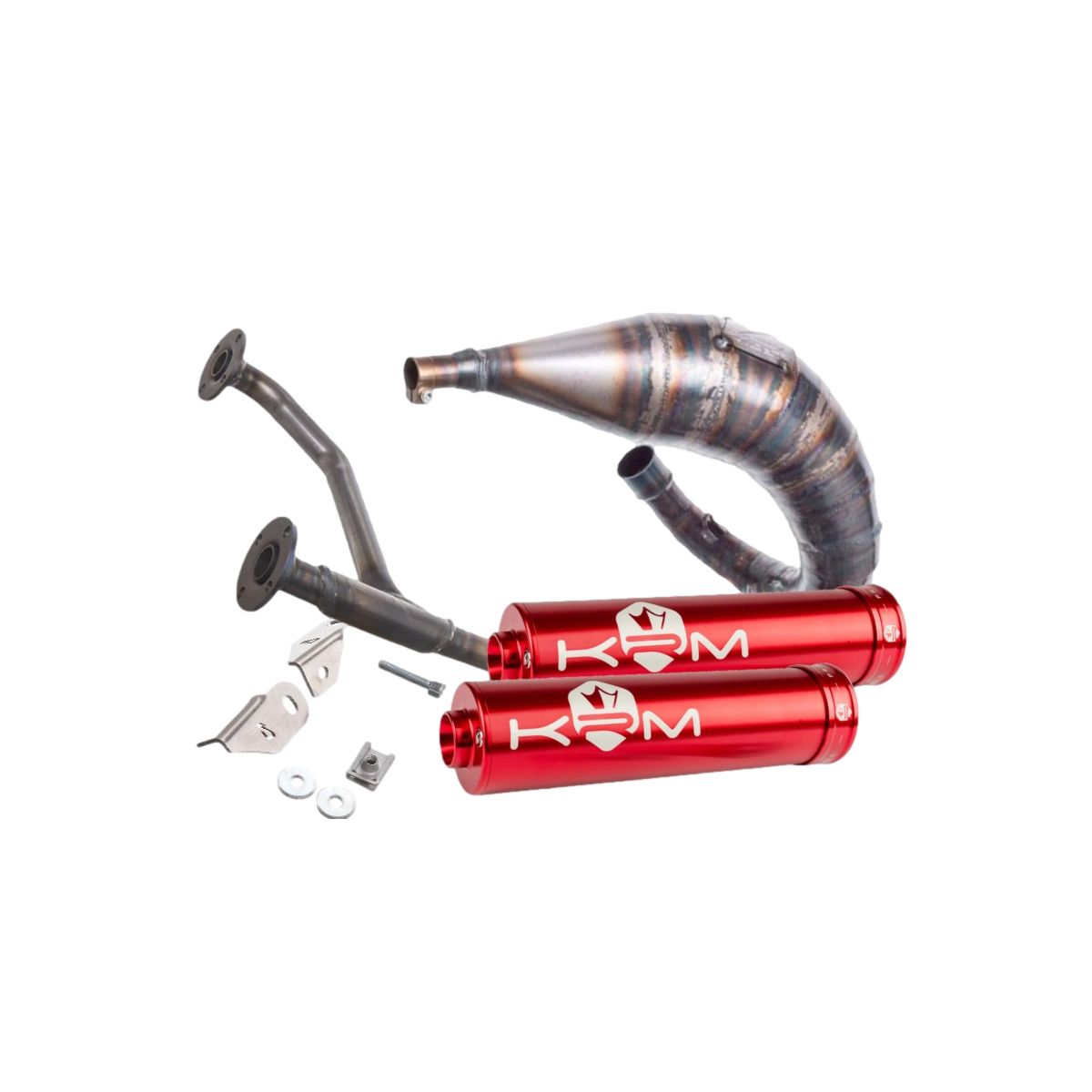🏍️ Pot Most passage haut 50/70 cc pour Beta RR 50 à partir de 2021, livré avec silencieux KRM Pro Ride rouge double sortie 🔧 Idéal pour moteurs 50 à 70 cc. 💨 Pour choisir la bride adaptée à votre kit cylindre, contactez-nous (ø25-32 / ø28-32 / ø32-32).
